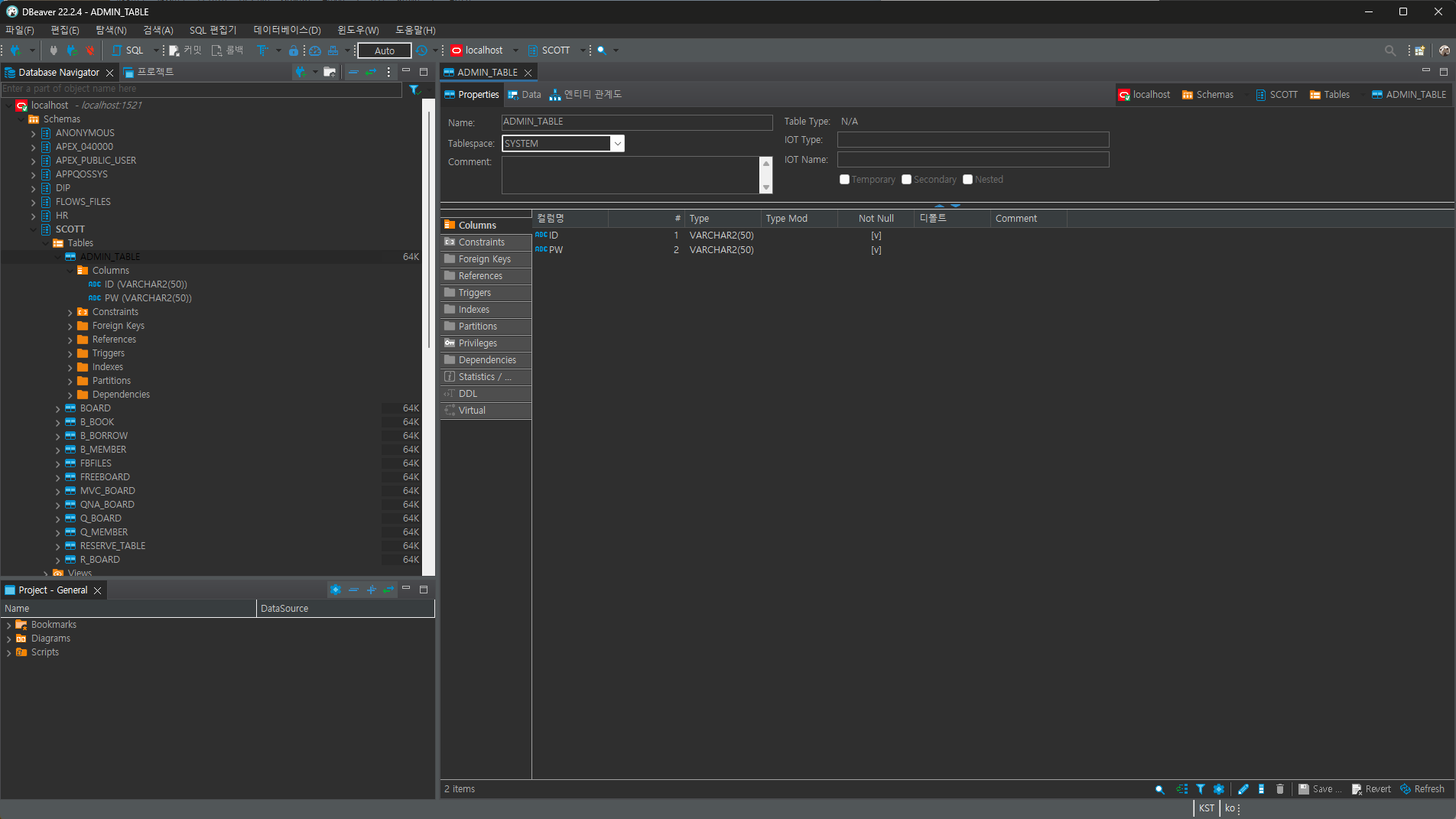 연결 진행하면 오라클 DB에 접속하여 작업들이 가능하다.