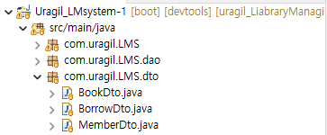 src/main/java에 dto package를 만들어주고 각 테이블 별로 Dto class를 만들고